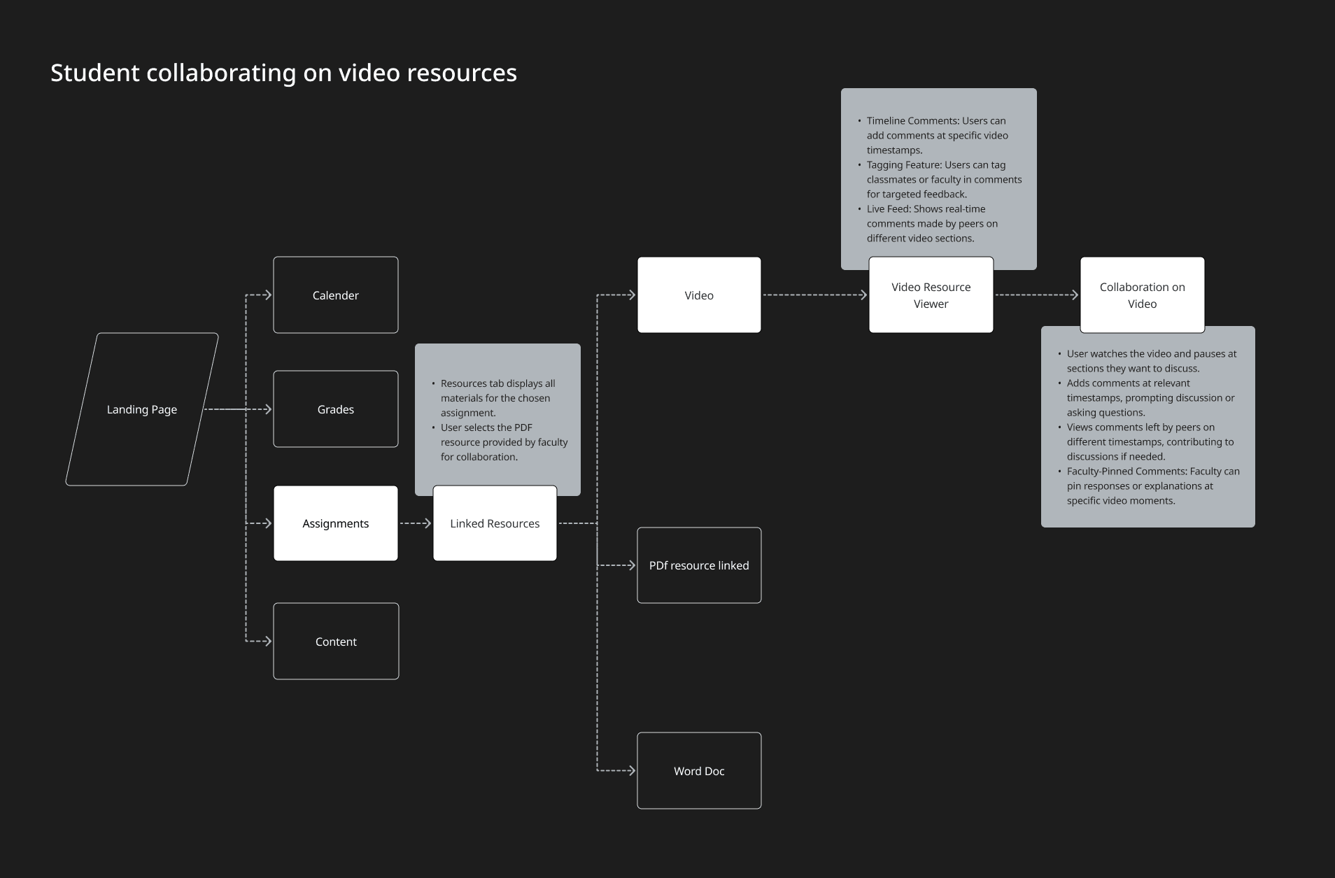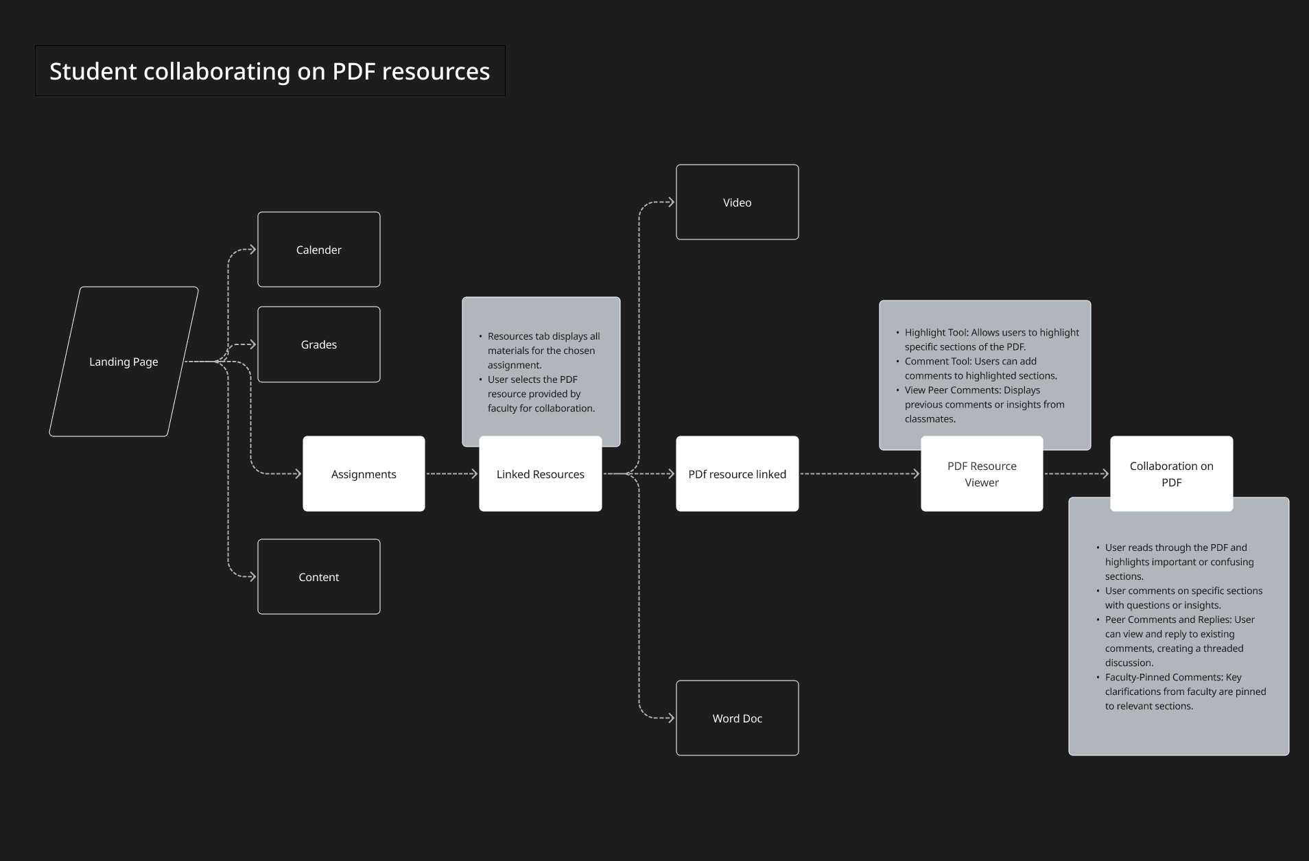 The platform lacked seamless collaboration, limiting peer interaction outside formal group projects. Navigating assignments, resources, and grades required excessive clicks, creating a frustrating user experience. Additionally, course materials were disconnected from tasks, making it difficult to apply resources effectively.
