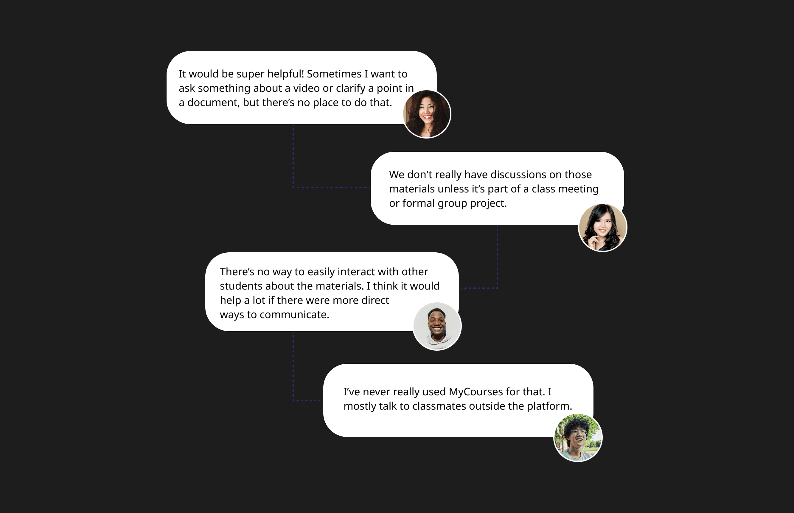 The MyCourses redesign bridges the gap between functionality and collaboration. By integrating real-time peer interactions and streamlining workflows, the platform fosters a more connected and productive learning environment. This project demonstrates the value of user-centered design in transforming educational tools into engaging and efficient systems.