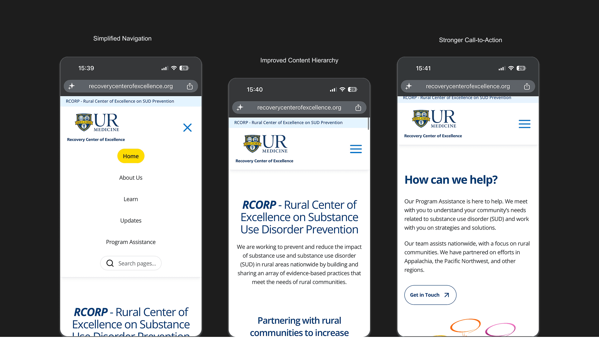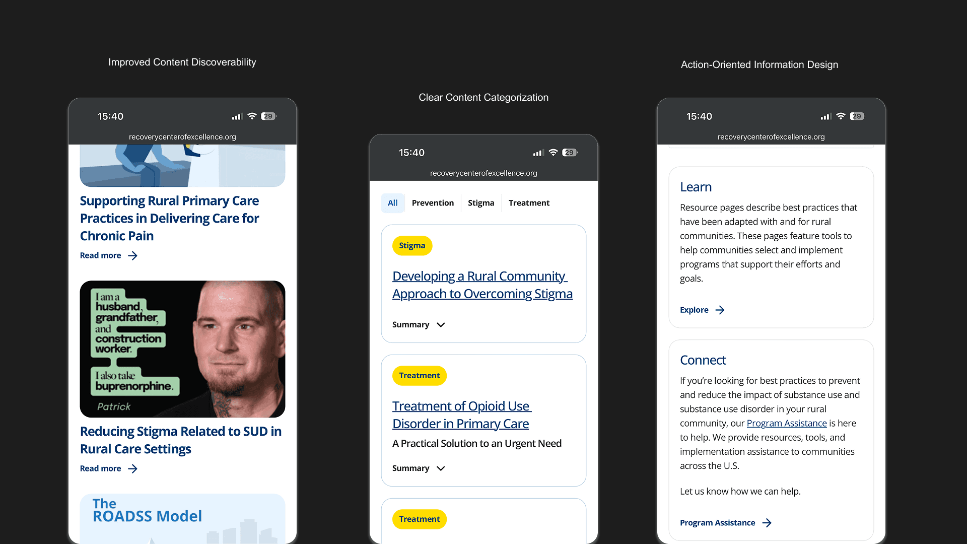 The redesigned platform improved clarity, navigation, and overall usability, making it easier for users to access and engage with recovery resources.